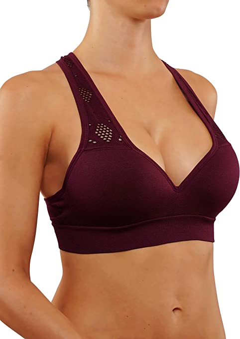ROUGHRIVER Women’s Yoga Crop Top Sports Bra with NOT Removable Adding Volume Pads Breathable Race Back