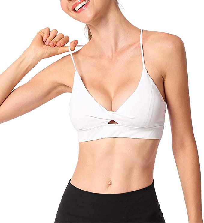 Womens Yoga Sports Bra Strappy Back Gym Bras Low Impact Fitness Activewear with Removable Padded