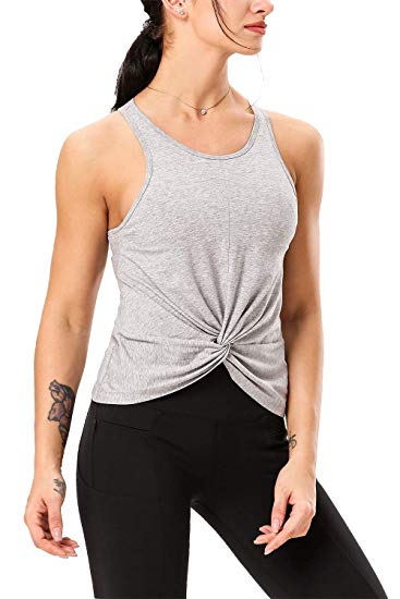 Workout Tank Tops for Women Racerback Yoga Shirts Tie Front Crop Top Gym Clothes Activewear
