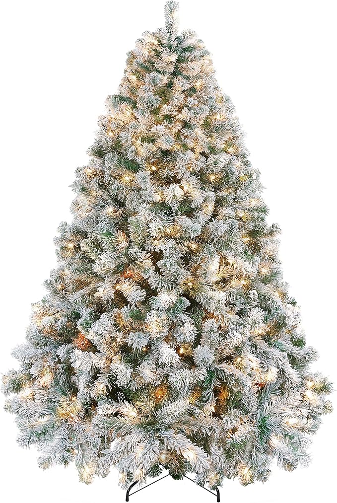 - Snowy Look: The Christmas tree features lush green branches covered in white flocking, creating a stunning snowy white and green appearance that adds a magical winter atmosphere to your holiday decor; Assembled Dimensions: 47.2″ Dia. × 72″ H