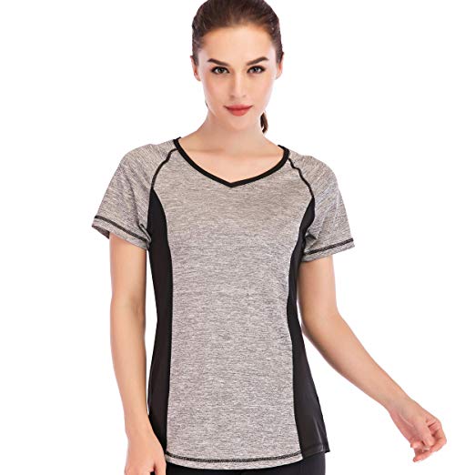 Women V Neck Yoga Shirt Loose Fit Runner Workout Tops Yoga Activewear T-Shirt Athletic Running Shirt