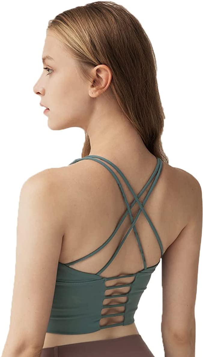 ARGISAA Yoga Sports Bra for Women Strappy Cross Back Crop Workout Cami Wirefree Tank Tops