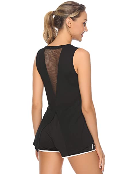—Cute Mesh Back Design:Very soft and the vent at back makes working out much more comfortable! It’s not a heavy cotton so when you sweat it dries easily. It’s does fit quite clingy.