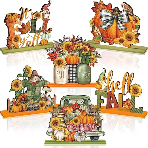 - Adequate Packaging Quantity: you’ll receive 6 styles of fall wooden table signs in this set; Included are designs featuring a gnome, truck, autumn pumpkin, maple leaf, sunflower, and a [Hello Fall] typography style; Each product has been carefully designed to add vitality to fall home decorations
