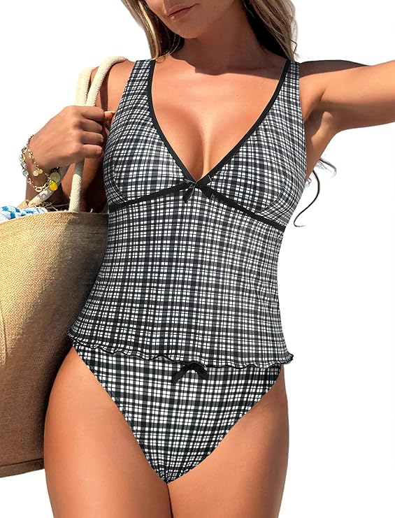 - Tankini Swimsuits for Women: Made from lightweight fabric, womens swimsuits are soft, stretchy, and quick-drying, allowing for maximum movement whether you’re swimming or sunbathing