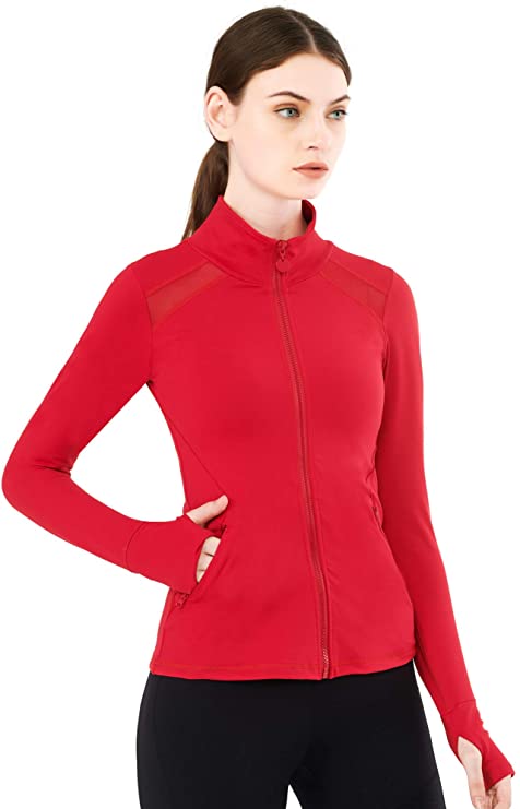 Zeronic Women’s Collar Pockets Casual Zip Jacket with Thumb Holes