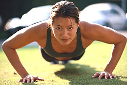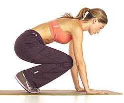 In pushup position (on knees or toes), perform one pushup. As you come up,