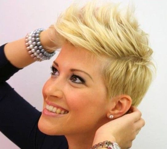 This hairstyle is a playful balance of edginess and elegance. It’s wild enough for night outs, classy for dinner parties and chic for an everyday look. The shape of a faux hawk is very flattering. it’s a perfect choice for women who love mohawk style, but don’t won’t to shave off the sides.