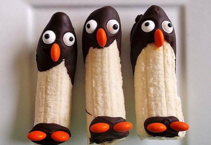 These cute little sledding penguins are a fun snack for Christmas. If your kids like chocolate-covered frozen bananas, they’re sure to like this dressed up version too! Full recipe here.