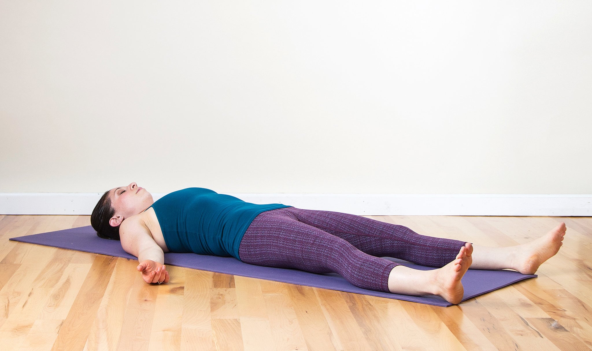 - In addition to quieting the physical body in Savasana, it’s also necessary to pacify the sense organs. Soften the root of the tongue, the wings of the nose, the channels of the inner ears, and the skin of the forehead, especially around the bridge of the nose between the eyebrows. Let the eyes sink to the back of the head, then turn them downward to gaze at the heart. Release your brain to the back of the head.
