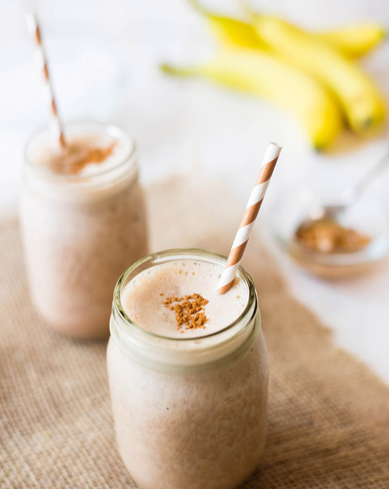 - Place the milk, walnuts, honey, and cinnamon in a blender and pulse until the walnuts get broken into very small pieces (small enough to pass through a straw). Add the frozen banana and pulse until the mixture is smooth.