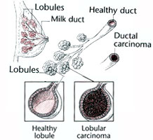cancer starts in a milk passage, or duct, of the breast, has broken