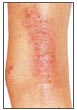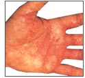Characteristic scaly rash.
