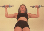 Once you've gotten the dumbbells up, lay back, until your back touches the