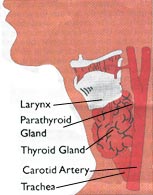 and straddles the front of the windpipe. It weighs approximately 20 gm and is