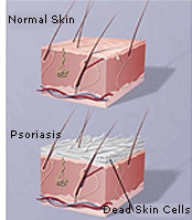 to 10 times faster than normal. As underlying cells reach the skin's surface and