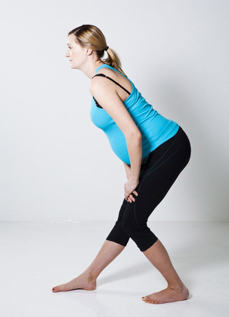 - Using a wall or chair as support, place your left foot behind your right foot, with the top of your left on the ground.