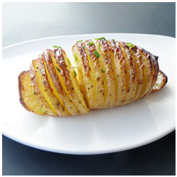 oblong baking dish, arrange potatoes in overlapping rows. Sprinkle