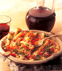 bowl. Pour the sauce over the pasta and toss to mix. Serve at once, sprinkled