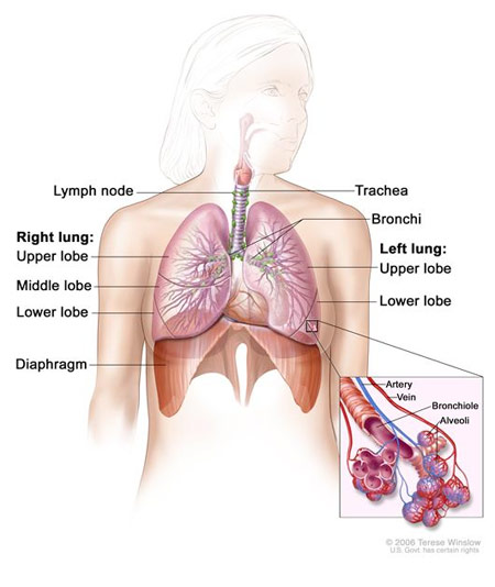 lung cancer, such as squamous cell carcinoma or adenocarcinoma, the malignant