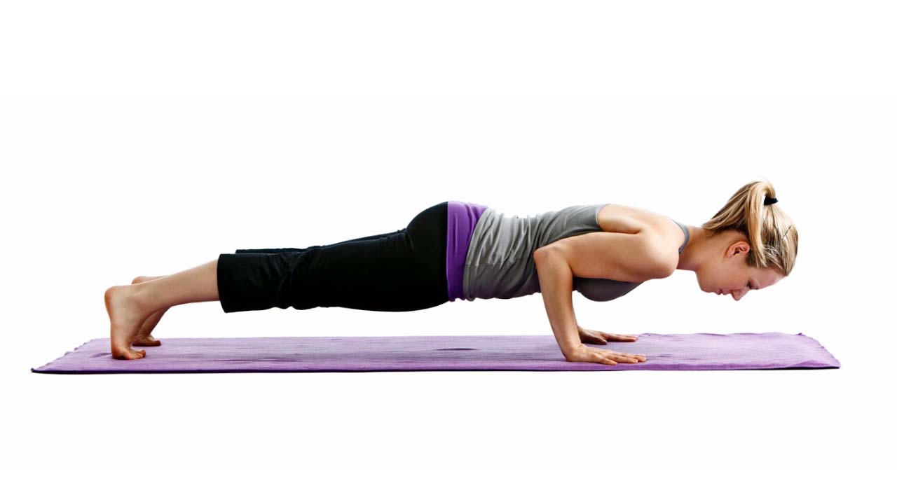 Chaturanga is like a push-up, and as such is a great arm strengthener. It is part of the Sun Salutation vinyasa sequence of poses.