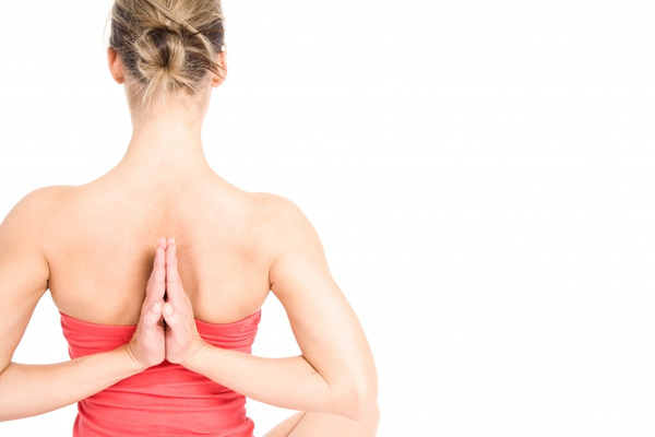 - Beginners: For a restorative variation, bring a block under the sacrum. Let your weight rest on the block. When coming down, keep the hands interlaced under the weight of the body for a shoulder opener.