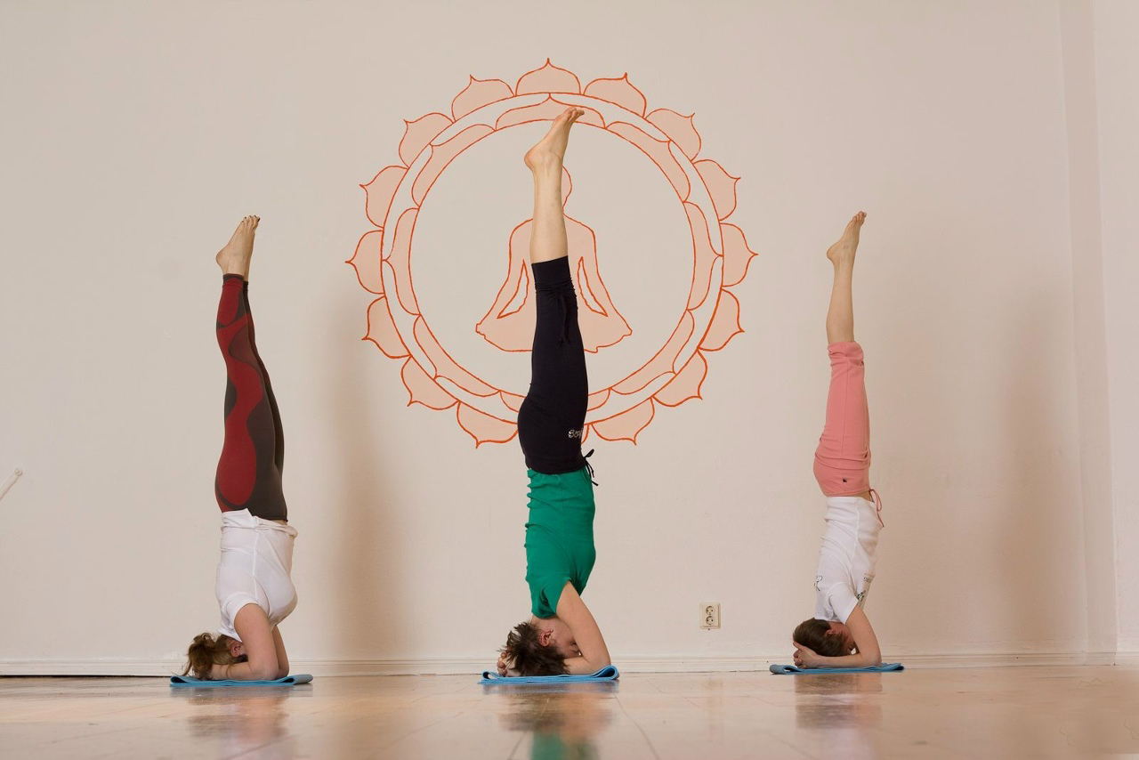 This pose is an energizing inversion. It stimulates the pituitary gland, which governs blood pressure, regulates water in the body, metabolism, sex organ function andthyroid function.