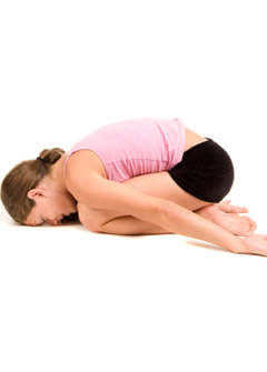 Stretches the upper body, releases pressure in the upper back, stretches and strengthens the legs, massages the internal organs, helps you breathe easily and clears the mind. From Downward Facing Dog, drop the knees to the floor. Spread the knees as wide as the mat, keeping the big toes touching. Bring the belly to rest between the thighs and the forehead to the floor. There are two possible arm variations: Either stretch the arms in front of you with the palms toward the floor or bring the arms back alongside the thighs with the palms facing upwards. Do whichever feel more comfortable to you.